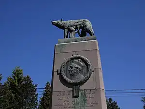 Ce monument de sept mètres de haut représente la Louve, Rémus et Romulus (œuvre de Georges Petit), symbole de la civilisation latine. Sur la partie inférieure du monument, orné d'une croix et entouré de chêne et de laurier figure, en un médaillon d'un mètre de diamètre, les traits de Pietkin. La stèle est unaugurée le dans un climat passionné. En effet, une partie du clergé proteste contre l'architecture du monument et son caractère païen. À l'initiative de l'abbé Toussaint relayé un temps par La Libre Belgique et La Gazette de Liége, une manifestation d'opposition aux deux Romains tétant la louve est organisée: immorale, indécente, païenne, les qualificatifs employés pour désigner la stèle cachant mal la germanophilie de l'abbé Toussaint. Celle-ci dénoncée, plusieurs membres du clergé malmédien se rétractent[1]... L'inauguration du monument devient le rappel de la mémoire d'autres résistants de la culture wallonne à Malmédy.