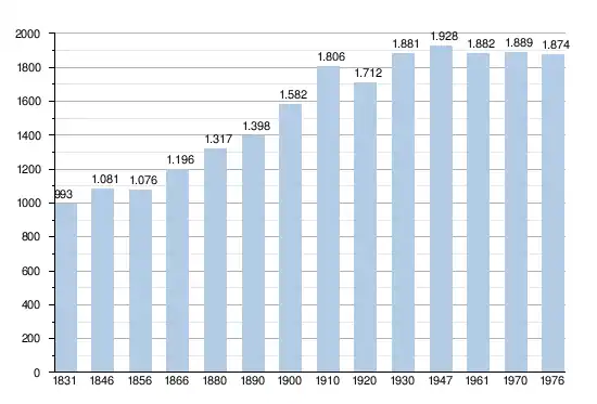 - Sources : INS, Rem. : 1831 jusqu'en 1970 = recensements, 1976 = nombre d'habitants au 31 décembre.