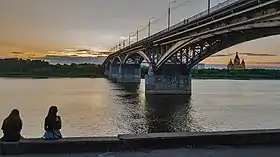 Pont de Kanavino à travers l'Oka et, au loin à droite, la cathédrale Saint-Alexandre-Nevski
