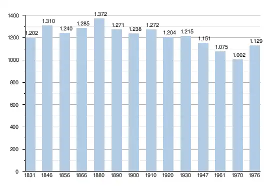 • Sources:INS, Rem:1831 jusqu'en 1970=recensements, 1976= nombre d'habitants au 31 décembre