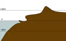 Cette configuration est le résultat de l'émergence d'un volcan sous-marin, il y a trois millions d'années, qui s'est ensuite éteint, et dont le sommet s'est recouvert d'un récif corallien pour former un atoll, il y a 1,2 million d'années. Puis, par les montées et descentes successives du niveau de la mer (au gré des différents épisodes de glaciation), d'autres dépôts coralliens se sont formés plus ou moins loin du sommet, créant le palier actuellement observé[13]. L'attitude actuelle du sommet de l'île est de 68 m[14].