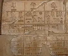La divinité principale est Horus et les autres divinités sont Apis, Hathor, Isis, Néfertoum, Ptah, Sokaris et Sekhmet.