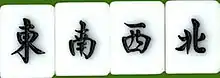 Les quatre vents au mah-jong : Est (, dōng), Sud (, nán), Ouest (西, ), et Nord (, běi).