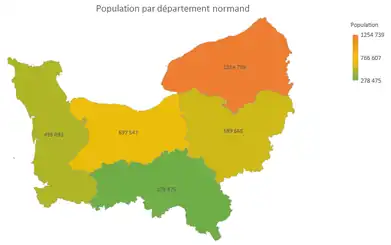 La Normandie est une région administrative française. Située dans le Nord-Ouest de la France, elle est bordée par la Manche. Elle s'étend sur 29 906 km2 et compte 3 327 966 habitants[note 1]. Le chef-lieu est fixé à Rouen (préfecture de la région Normandie), tandis que l'hôtel de région est situé à Caen (siège du conseil régional de Normandie)[1]. La commune la plus peuplée de la région est Le Havre, à l'embouchure de la Seine[note 2].
