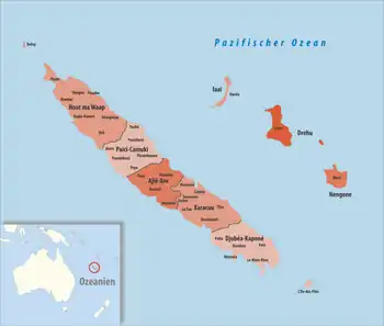 Elle couvre une superficie terrestre totale de 18 575,5 km2[60] et possède environ 3 400 km de côtes[61]. Sa zone économique exclusive (ZEE) est de 1 422 543 km2, soit près de 13 % de la ZEE française, la deuxième plus importante pour un territoire français après celle de la Polynésie française et la 9e d'Océanie. Elle a des frontières maritimes avec les îles Salomon au nord, le Vanuatu au nord-est, Fidji à l'est, Norfolk (territoire autogouverné de l'Australie) au sud et l'Australie à l'ouest.