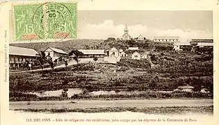 En plus de ces transportés, après la Commune de Paris, la Nouvelle-Calédonie sert de lieu de déportation pour de très nombreux anciens communards condamnés par les conseils de guerre mis en place par le gouvernement d'Adolphe Thiers. De même, plus de 2 000 condamnés d'Afrique du Nord, essentiellement des résistants algériens à l'occupation française dès 1830, furent envoyés dans les bagnes de Nouvelle-Calédonie[24]. La présence des bagnards de « la Nouvelle » constitue un apport de main d'œuvre considérable, à l'origine des principaux grands travaux menés dans la seconde moitié du XIXe siècle aussi bien à Nouméa (aménagement du plan urbain avec remblaiement, construction de monuments comme la cathédrale ou le temple protestant...) qu'en « Brousse » (routes, ponts, tunnels...). Le nombre de pénaux présents en Nouvelle-Calédonie est monté jusqu'à 11 110 en 1877, soit les deux tiers des Européens présents dans la colonie, et en 1897, date de l'arrêt des convois de transportés et relégués, ils sont encore 8 230[25]. La présence du bagne est toutefois peu à peu contestée par les colons libres qui subissent la concurrence de la main-d'œuvre des bagnards mais aussi de l'administration pénitentiaire qui accapare les meilleures terres. Un nouveau gouverneur nommé en 1894, Paul Feillet, se déclare contre le « robinet d'eau sale » que constitue la « transportation ». Elle sera interrompue en 1897, mais la déportation de prisonniers politiques continue (jusqu'en 1931) et les prisonniers du bagne vont y finir leur vie (en 1921, ils étaient encore 2 300). Le dernier détenu a été Cheikou Cissé, tirailleur condamné en 1918 à la déportation à perpétuité, jusqu'à son transfert en Guyane après la loi du désaffectant définitivement la Nouvelle-Calédonie comme lieu de déportation[26].