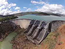 - l'été austral, saison chaude et humide, ou encore « saison des cyclones », de mi-novembre à mi-avril. Elle est caractérisée par des températures maximales de 28 °C à 32 °C, mais pouvant aisément dépasser les 30 °C (la plus forte température jamais enregistrée étant ainsi de 39,1 °C à Bouraké, sur la commune de Boulouparis, le ) et un fort taux d'humidité. Le mois le plus chaud de l'année est généralement février, avec des températures moyennes entre 24 et 29 °C, et le plus pluvieux est janvier, avec des précipitations moyennes de 244,1 mm[79]. La ZCIT (zone de convergence intertropicale) étant dans l'hémisphère sud, de nombreux cyclones ou dépressions tropicaux se succèdent à cette période et peuvent parfois être violents. Ainsi, lors du cyclone Erica, qui a frappé la Nouvelle-Calédonie les 13 et , le Territoire a connu des records de vents et de pressions minimales (tous enregistrés à la pointe de Vavouto, au sud de Voh, le ), soit un vent de 166 km/h en moyenne sur 10 minutes, avec des rafales de 234 km/h et une pression de 952,3 hPa[80]. Ce cyclone a alors fait deux morts, près de 3000 sans-abris momentanés et des dégâts matériels estimés à 5,692 milliards de Francs Pacifique (47,7 millions d'euros environ) ;