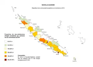 La Nouvelle-Calédonie est aussi dénommée familièrement par les descendants de colons européens (les « Caldoches ») et les Métropolitains (les « Zoreilles ») « le Caillou », tandis que le terme « Kanaky » a une connotation indépendantiste et identitaire en référence au terme kanak, terme d'origine hawaiienne, répandu dans le Pacifique par les navigateurs européens pour désigner les populations insulaires autochtones, suivi du suffixe « -y » anglophone[88],[89]. A contrario, l'expression de « Territoire », qui faisait référence au statut de territoire d'outre-mer et soulignait donc le lien à la France, relevait d'une phraséologie anti-indépendantiste[90]. La forte autonomie obtenue par la Nouvelle-Calédonie et la fin de ce statut de territoire avec l'accord de Nouméa en 1998 ont contribué à l'emploi de plus en plus fréquent du terme « Pays » au sein de la classe politique, médiatique et de l'électorat néo-calédonien, qu'ils soient favorables ou opposés à l'indépendance.