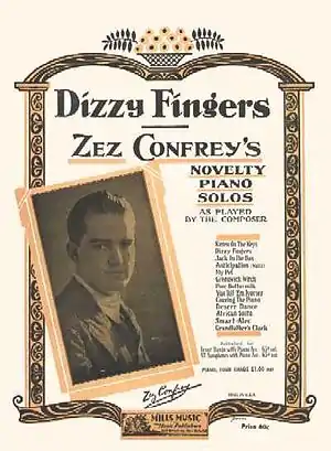 Le novelty se révèle au grand public en 1921 avec la composition de Zez Confrey Kitten on the Keys, qui connaît alors un très grand succès au point de devenir le “manifeste” du novelty, comme l'avait été en 1899 Maple Leaf Rag pour le ragtime classique. D'autres compositeurs suivent le mouvement, et de très nombreux morceaux novelty sont publiés, jusque dans les années 1930. Parmi les pianistes professionnels qui se spécialisent dans le genre, on peut citer Charley Straight, Roy Bargy, Victor Arden, Pete Wendling, Max Kortlander et le compositeur de novelty anglais Billy Mayerl qui démontre la vogue de cette musique en dehors des États-Unis.