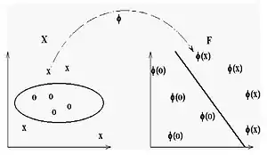 Comme noyau, K correspond à un produit scalaire dans un espace caractéristique basée sur une certaine application Φ :