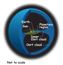 Vue d'artiste du nuage d'Oort et du nuage de Hills. | |