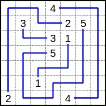 L'objectif est de tracer un chemin entre toutes les paires de mêmes nombres sur une grille. Les chemins ne doivent pas se croiser. Les nombres doivent aux extrémités des chemins (pas en plein milieu). Généralement, on demande que toutes les cases de la grille soient remplies..