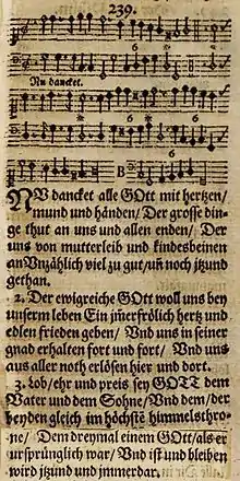 Nun danket alle Gott (français : Maintenant, rendez tous grâces à Dieu) est un choral composé par le pasteur protestant d'Eilenbourg Martin Rinckart (1586–1649). Il est l'un des chorals les plus connus en langue allemande.