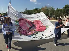 Des portraits de Nuriye Gülmen sont brandis par les participants à la « marche pour la justice » entre Istanbul et Ankara, accueillie dans la capitale par près de 2 millions de personnes, devant lesquelles Kemal Kılıçdaroğlu, chef du parti d'opposition CHP (Parti républicain du peuple) et organisateur de cette marche, appelle le gouvernement à « mettre fin au coup d'État civil perpétré depuis la mise en place de l'état urgence »[4].