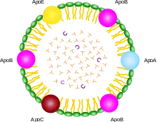 Il existe cinq classes de lipoprotéines, remplissant différentes fonctions. Par exemple, les lipoprotéines de haute densité notées HDL évitent que le cholestérol s'accumule dans les vaisseaux sanguins en l'amenant au foie qui l'élimine ; ces lipoprotéines sont appelées bon cholestérol, et celles faisant le chemin inverse sont le mauvais cholestérol, noté LDL. La concentration de LDL augmente avec la prise d'acides saturés ou d'acide gras trans, ce qui augmente également le risque de maladie cardio-vasculaire[A 8]. Enlever ces acides du régime peut nécessiter des changements profonds pouvant donner lieu à des carences, mais il est possible d'en réduire la quantité, par exemple dans le régime méditerranéen.