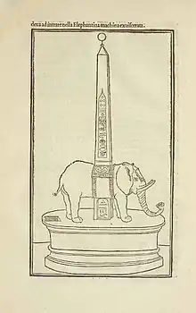 L'éléphant surmonté d'un obélisque est un thème qui reproduit une gravure du Songe de Poliphile, dont Alexandre VII possédait un exemplaire annoté de sa main[1]. Un monument du même type, la Fontaine de l'éléphant, regroupant un éléphant et un obélisque antiques, a été dressé au XVIIIe siècle à Catane, sur la place de la Cathédrale.