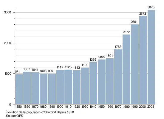 Selon l'Office fédéral de la statistique, Oberdorf compte 3 075 habitants en 2008[1]. Sa densité de population atteint 189 hab./km².