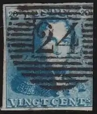 Ce sont les bureaux principaux qui contrôlaient une vaste région postale. Ils étaient au nombre de 4 et étaient localisés dans les grandes villes d’Anvers, de Bruxelles, de Gand et de Liège. Pour ces 4 bureaux, les barres sont horizontales et au nombre de 18.