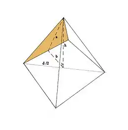 L'aire des quatre faces de la pyramide, si l'on néglige le phénomène de creusement des faces au niveau de l'apothème (voir Le phénomène d'apothème), est donnée par a×c/2 soit 356,09×440/2 = 78 339,8 coudées2 et h2 = 2802 = 78 400 coudées2. Par conséquent ces deux valeurs sont égales à 2×(78400 – 78339,8)/(78400 + 78339,8) = 0,08 % près.