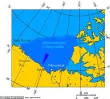 - du cap Arctique à l'extrémité nord de l'île Kotelny (76° 10′ N, 138° 50′ E : la limite nord de la mer des Laptev ;