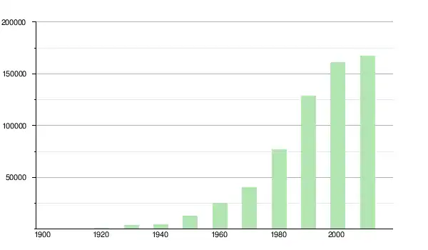 | 1950 | 12 881 | ▲ +176,95 % | |