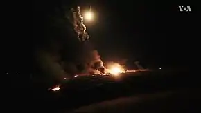 Le 14 novembre 2021, le New York Times rapporte une frappe aérienne américaine ayant eu lieu à Al-Baghouz Fouqani, le 18 mars 2019. Deux bombes sont lancées à douze minutes d'intervalle sur une foule échappant aux combats, causant la mort de 80 personnes, dont 64 civils[296],[297]. Selon le New York Times, les opérateurs de drones basés sur la base aérienne d'Al-Udeid au Qatar, qui avaient identifié la foule comme étant composé essentiellement de civils, sont surpris de voir une première bombe de 227 kilogrammes larguée par un avion américain F-15E, suivie d'une deuxième bombe de 907 kilogrammes visant les survivants[296]. Des observateurs civils venus sur la zone de la frappe le lendemain relatent un grand nombre de femmes et d'enfants morts ; le collectif de journalistes syriens indépendant Raqqa Is Being Slaughtered Silently qualifie l'incident de « terrible massacre » et publie des photos des corps[296]. La zone de frappe est rasée peu de temps après[296]. Un responsable juridique de l'US Air Force signale l'incident comme un « possible crime de guerre »[296] mais les enquêtes menées notamment par l'US Air Force Office of Special Investigations sont bloquées ou mises sous silence[298]. Le 15 novembre 2021, après la révélation du journal, le secrétaire à la Défense Lloyd Austin ordonne un briefing sur la frappe et son traitement tandis que des associations de défense des droits de l'homme demandent une enquête indépendante par le Congrès des États-Unis[299].