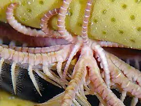 Gros-plan sur les cirrhes d'une Oligometra serripinna.