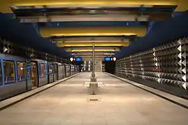 La station U1 dispose des deux voies de ligne encadrées par deux quais latéraux. Ces installations sont également desservies par les rames de renfort de la ligne U7 du métro de Munich[4]. La station U3 dispose d'un quai central encadré par les deux voies de la ligne[5],[6].