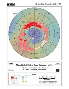 - (en) Lancaster, N. et Greeley, R., Sediment Volume in the North Polar Sand Seas of Mars,