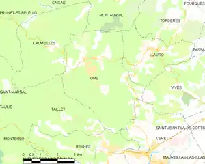 Oms [ɔms] est une commune française située dans l'est du département des Pyrénées-Orientales, en région Occitanie. Ses habitants sont appelés les Ulmiens. Le nom de la commune est un mot catalan signifiant les ormes[1], lesquels ornent son blason. L'artère principale de la commune s'appelle fort précisément la rue de l'Orme. Sur le plan historique et culturel, la commune est dans la région des Aspres, un minusule territoire roussillonnais compris entre les sillons de la Têt au nord et du Tech au sud qui tire son nom de la nature caillouteuse de ses sols.