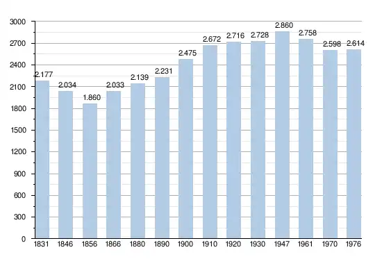 - Sources : INS, Rem. : 1831 jusqu'en 1970 = recensements, 1976 = nombre d'habitants au 31 décembre[2].
