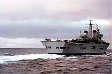 | Une composante navale (Task Group 317.8) La moitié de la flotte britannique mène alors son grand exercice de printemps « Springtrain » au large de Gibraltar sous les ordres du contre-amiral John « Sandy » Woodward. Celui-ci est nommé chef de la force opérationnelle aéronavale, le Task Group 317.8 qui doit traverser les 12 800 km entre la Grande-Bretagne et les Malouines pour la reconquête et que la Royal Navy réussit à constituer en une semaine : « À cette époque de la guerre froide, nous étions prêts pour la Troisième Guerre mondiale sous 48h, ce n'était pas un problème ». Elle est constituée autour des porte-aéronefs HMS Hermes (R12) et HMS Invincible (R05) (le prince Andrew d'York y sert alors comme pilote d'hélicoptère). Une seconde composante est la force d'assaut amphibie sous les ordres du commodore Michael Clapp (en) embarquée sur le paquebot réquisitionné SS Canberra.