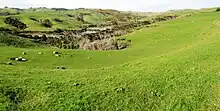 La géologie du secteur de Raglan-Kawhia[4] indique que la faille normale est évidente, s’étendant le long de la ligne de côte de la mer de Tasman et probablement le long des ruisseaux de drainage tels que le fleuve Opotoru sur environ 6 km à l’est du sommet de Karioi et la base, consistant en couches de conglomérats intercalés avec des grès et localement des siltstone, fortement discordants au niveau des roches du groupe de Te Kuiti, au sud de la localité de Raglan dans l’estuaire du fleuve Opotoru (R 14/751741).