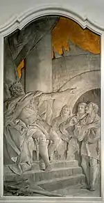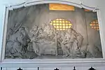 Le long des murs, les fresques en clair-obscur sur fond d'or sont des œuvres de Giandomenico Tiepolo. Elles représentent huit scènes bibliques :