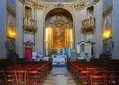 À l'intérieur de l'église, l'autel principal est orné d'un retable représentant la Sainte Famille de Francesco Trevisani.