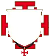 Patriarche grand-prieur | Le patriarche grand-prieur de l'ordre met au chef de ses armes celles de l'ordre, d'argent à la croix de Jérusalem de gueules. Il le timbre du chapeau héraldique de sinoples à 5 rangées de houppes et cordons de même. |