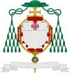 Cardinal grand maître | Le cardinal grand maître écartèle ses armes avec celles de l'ordre, d'argent à la croix de Jérusalem de gueules. Il le timbre du chapeau héraldique de gueules à 5 rangées de houppes et cordons de même. Le tout posé sur un manteau mouvant de la couronne d'épines surmontée du cimier. |