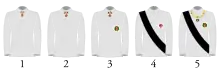 - l'uniforme de « petite cérémonie » est constitué d'un pantalon de drap rouge à galon d'or, et d'une veste en drap blanc ivoire. Les parements (manchettes et col) sont en velours rouge bordeaux accompagnés d'un nombre plus ou moins important de galons dorés, selon le grade. Un ceinturon de cuir recouvert d'un galon doré avec porte-épée, une épée, des bottines vernies et des éperons complètent le tout. La coiffure reste le bicorne.