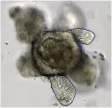 Un organoïde est une version miniature et simplifiée d'un organe, fabriquée in vitro en trois dimensions et qui présente une micro-anatomie réaliste[1]. Il est issu d'une ou de quelques cellules d'un tissu, de cellules souches embryonnaires[2] ou de cellules souches pluripotentes induites (iPSC)[3], qui peuvent s'auto-organiser en une structure tridimensionnelle grâce à leurs capacités d'auto-renouvellement et de différenciation. Les organoïdes sont utilisés par les scientifiques pour étudier les maladies et les traitements en laboratoire. Un organoïde présente les propriétés suivantes: