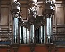 - étain, à demi-calottes avec rasettes centrales, 3 derniers tuyaux neufs.
