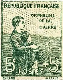 La France reconnaît les orphelins de France, victimes des deux guerres mondiales particulièrement, sous le terme de pupille de la Nation quand ils sont mineurs. Ils sont accompagnés par l'Office national des anciens combattants et victimes de guerre (ONAC)[9]. À l'issue du premier conflit mondial ils sont 986 000. Pour le second, les pupilles de la nation sont 350 000 à l'issue de la guerre.
