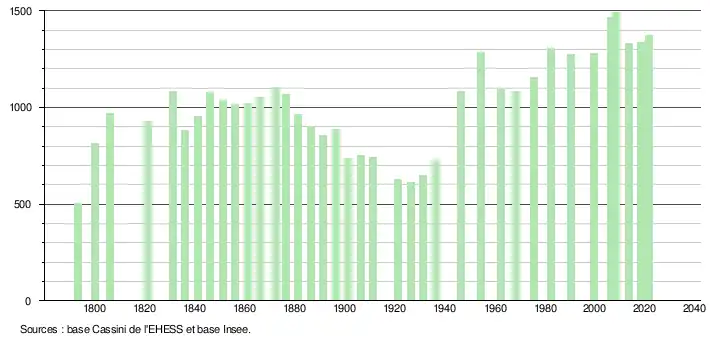 1 372 hab. (2021 en augmentation de 3,31 % par rapport à 2015)