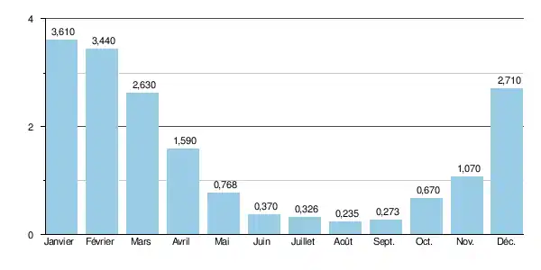 Cependant, le VCN3 peut chuter jusque 0,044 m3/s, en cas de période quinquennale sèche, soit 44 litres par seconde[2], ce qui devient sévère.