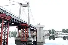Pont de Podil (métro et route) en construction, reliant la péninsule de Rybalskyi à l'île Trukhaniv. Pont de Podil (métro et route) en construction, reliant la péninsule de Rybalskyi à l'île Trukhaniv.