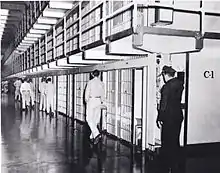 Les détenus devaient obligatoirement se raser dans leur cellule trois fois par semaine. Le fait de tenter de soudoyer, d'intimider ou d'agresser des surveillants pénitentiaires était considéré comme une infraction très grave [49]. Les Afro-Américains ont été séparés des autres lors de leur affectation en cellule du fait de la prévalence des abus raciaux[51].
