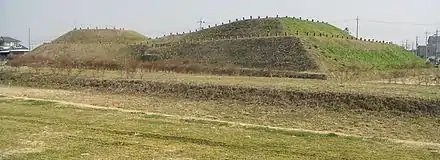Le lieu où reposent les empereurs Ten'no est devenu soit un tertre octogonal - comme Noguchi Onohaka (ou Noguchi Ō-no-haka), Asuka (Nara), mausolée attribué au couple impérial, l'empereur Tenmu (天武天皇 631?-686) et l'impératrice Jitō (持統天皇 645-703) - soit un tertre composite avec une base carrée et un sommet rond. Ces formes pourraient avoir été influencées par la philosophie politique chinoise[12], mais leur forme semble aussi incarner la forme du monde, l'empereur mort ou vivant étant le centre du monde et son incarnation.