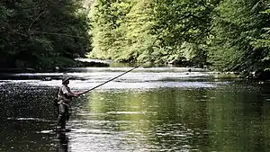 Malgré l'essor et la popularisation au cours des années 85 de techniques innovantes permettant de pratiquer avec succès en mer ou sur les poissons carnassiers d'eau douce, elle reste encore traditionnellement associée à la pêche de la truite, de l'ombre ou du saumon atlantique en rivière.