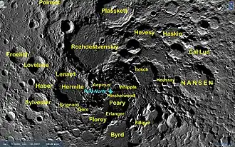 Les cratères notables dans la région polaire nord lunaire (entre 60° de latitude nord et le pôle nord) comprennent : Avogadro, Bel'kovich, Brianchon, Emden, Gamow, Goldschmidt, Hermite, J.Herschel, Meton, Nansen, Pascal, Petermann, Philolaus, Plaskett, Pythagore, Rozhdestvenskiy, Schwarzschild, Seares, Sommerfeld, Stebbins, Sylvester, Thales, Van't Hoff, W. Bond.