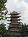 En 2014, il est décidé de bâtir une nouvelle pagode et de remplacer le stupa existant par un monument de 13 étages[2] et d'une hauteur de soixante-trois mètres[1]. La construction de la pagode aux couleurs rouges et ambrées et du stupa aux toitures incurvées vers le haut s’achève en 2018, . La pagode présente de nombreux symboles du bouddhisme à l'instar de la porte principale à trois entrées et ses quatre piliers, surplombée par deux statues de lion, gardiens de l'entrée des lieux[1].