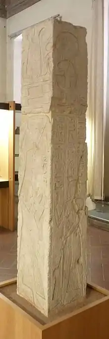 Un pilier provenant assurément de cette tombe mais dont la provenance n'est pas indiquée est conservé au musée archéologique de Florence. Ses quatre faces portent une représentation du grand prêtre avec sa filiation et ses titres.